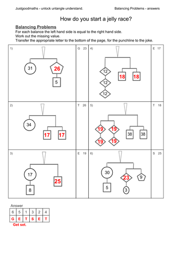 Algebra Worksheets - Math-Drills Welcome to the Algebra worksheets page at Math-Drills.com, where unknowns are common and variables are the norm. ... On one side of the two-pan balance, place the three bags with x jelly beans in each one and two loose jelly beans to represent the + 2 part of the equation. On the other side of the balance, place 14 jelly beans and three empty ...